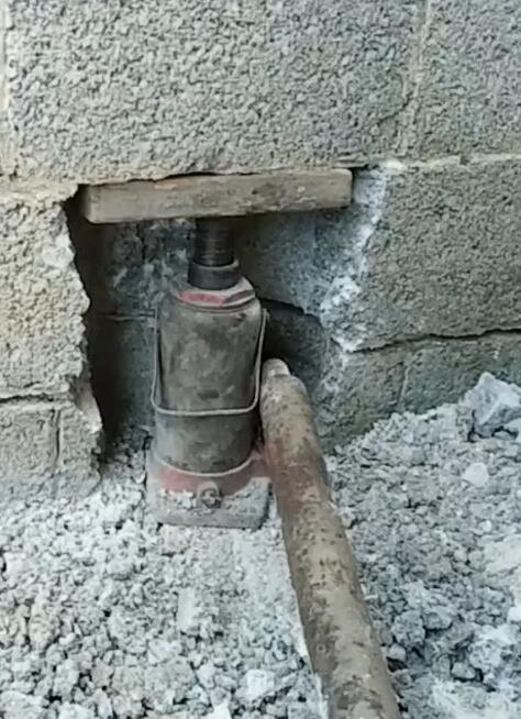舊墻體的拆除過程中千斤頂起到了非常重要的作用,大大的節省人力勞動,加快墻體拆除進度。